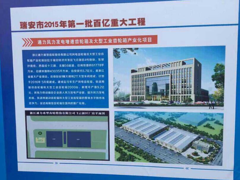 通力風(fēng)電齒輪箱及大型重載齒輪箱產(chǎn)業(yè)化項(xiàng)目位于瑞安經(jīng)濟(jì)開發(fā)區(qū)飛云新區(qū)4號(hào)地塊,總用地116畝,是瑞安市百億投資重大項(xiàng)目之一,是浙江省重大產(chǎn)業(yè)項(xiàng)目。該項(xiàng)目建成后用于生產(chǎn)風(fēng)電齒輪箱、軌道用驅(qū)動(dòng)齒輪箱和大型重載齒輪箱,該項(xiàng)目的建設(shè)能夠提升通力公司的技術(shù)創(chuàng)新能力和市場(chǎng)競爭力,促進(jìn)公司高精密齒輪箱在國內(nèi)的推廣應(yīng)用。