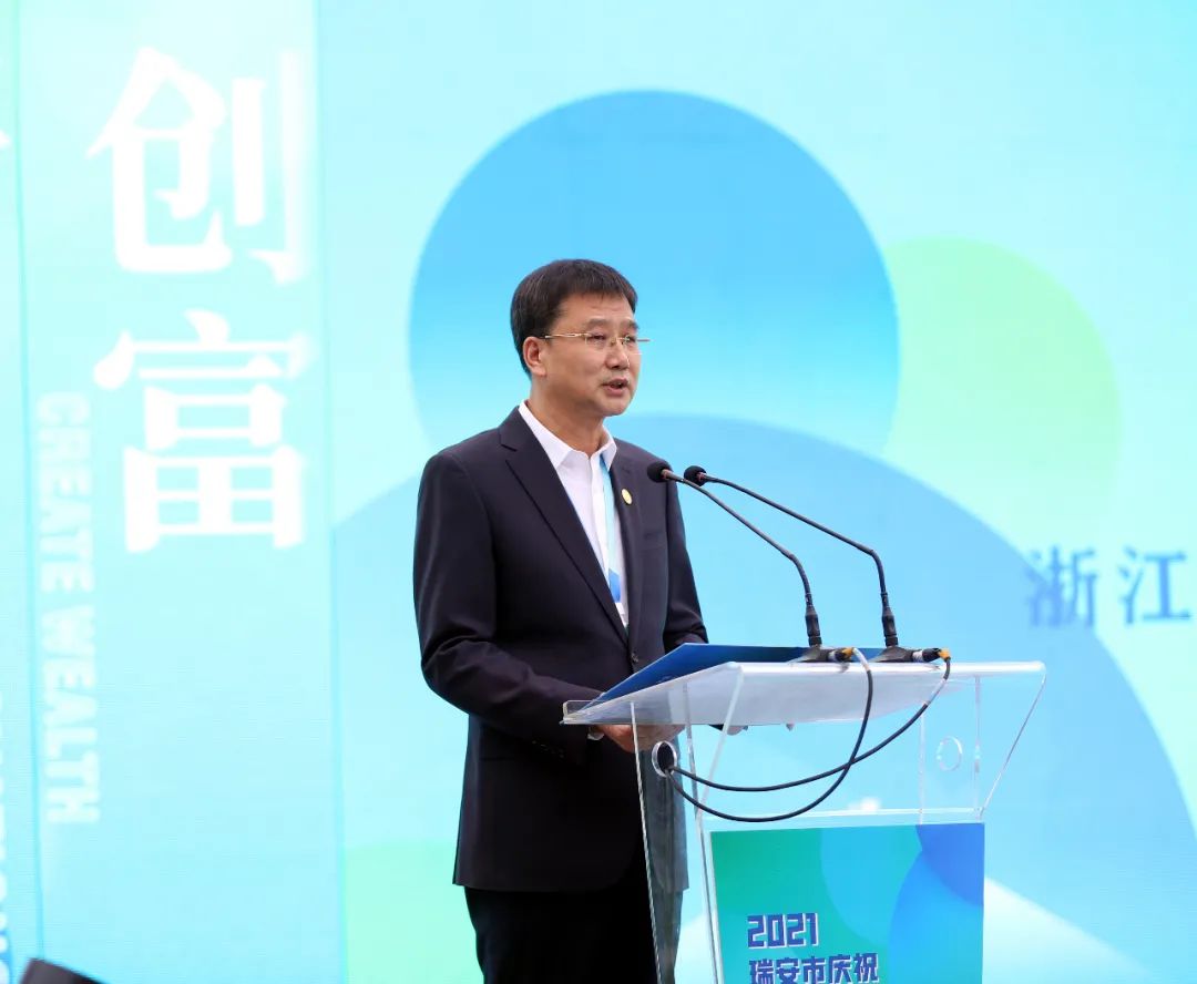 10月28日,2021瑞安市慶?!懊駹I企業家節”大會在瑞安中塘河河畔隆重舉行,瑞安市政協副主席、市工商聯主席、通力科技董事長項獻忠應邀出席大會,并作為企業家代表發言。
