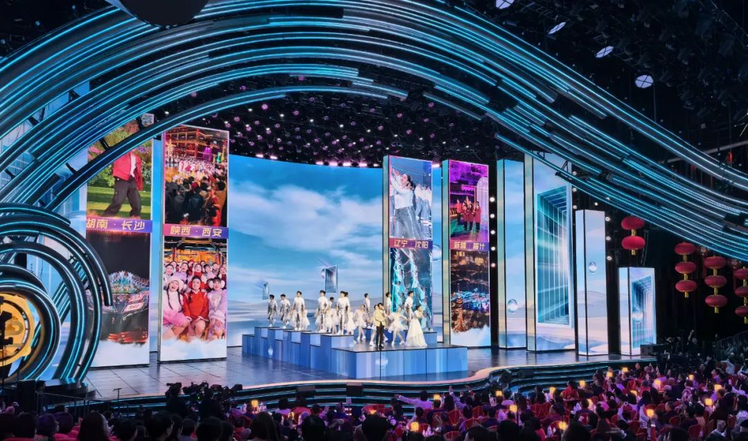 據悉,本次龍年央視春晚的舞臺設計別開生面,創新引入VP電影制作模式,打造XR+VP虛實融合超高清制作系統,以“景屏聲光”協同模式營造出璀璨奪目的效果,全新創制的大型智能平移旋轉屏為今年春晚注入了前所未有的科技亮點。上百塊LED屏幕,超千臺舞臺燈具全都集成到智能平移旋轉屏上,經過精密的算法與巧妙的機械設計,實現舞美場景瞬息萬變,這一設計不僅豐富了舞臺層次和動感,更帶給觀眾前所未有的視覺體驗。